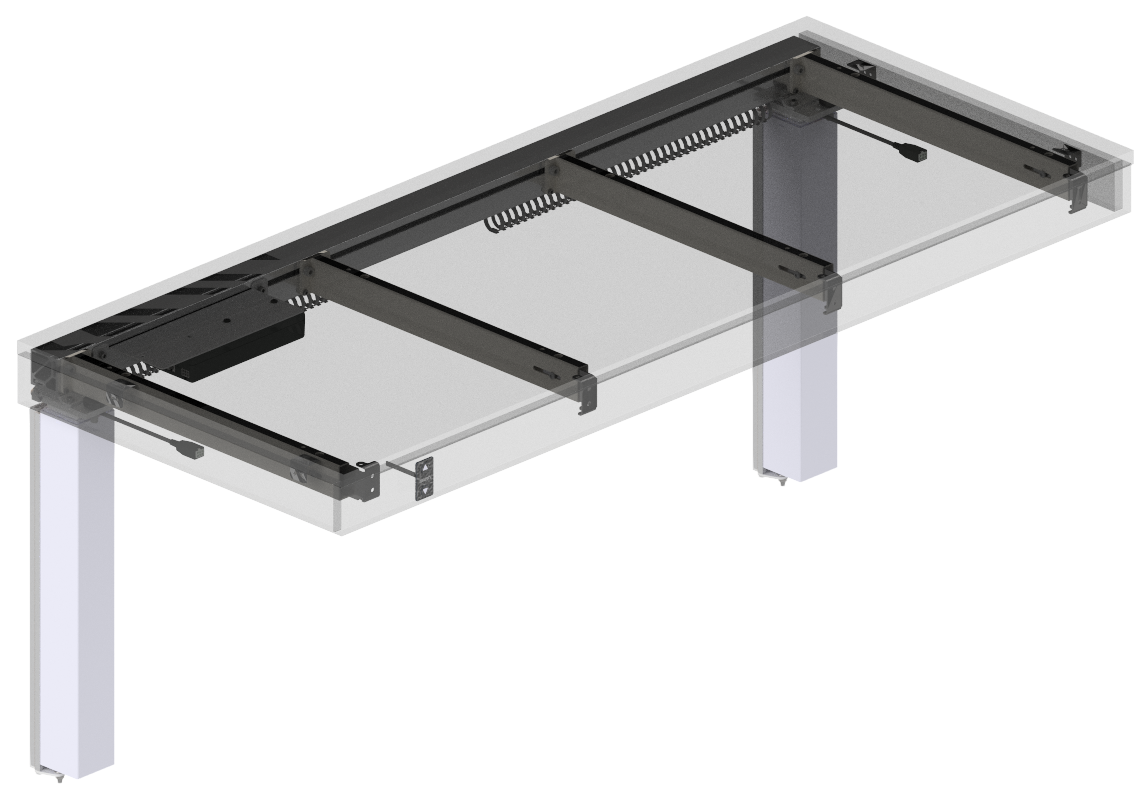When you mount a kitchen table top on the unit, it can be raised and lowered in one movement. TYou used it where you might occasionally need to adjust the height of the table. Particularly suitable for homes for the elderly, care centers and homes for the disabled, where kitchens must have height-adjustable tables.